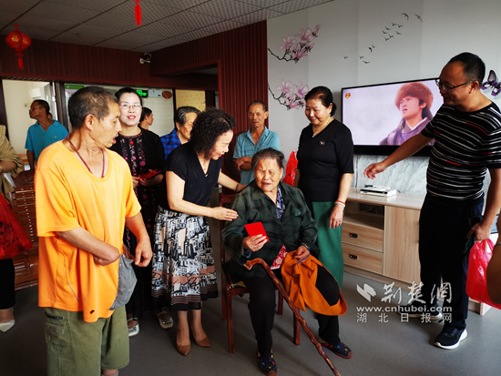 荊楚網(wǎng)(湖北日報網(wǎng))訊(通訊員 李歡)國慶遇重陽,佳節(jié)同歡慶。9月29日上午,陽新新環(huán)商貿(mào)總經(jīng)理張如意等10位女企業(yè)家們帶著2萬元慰問金和物資,走進(jìn)陽新縣社會福利院,向老人們送去節(jié)日的祝福和問候。