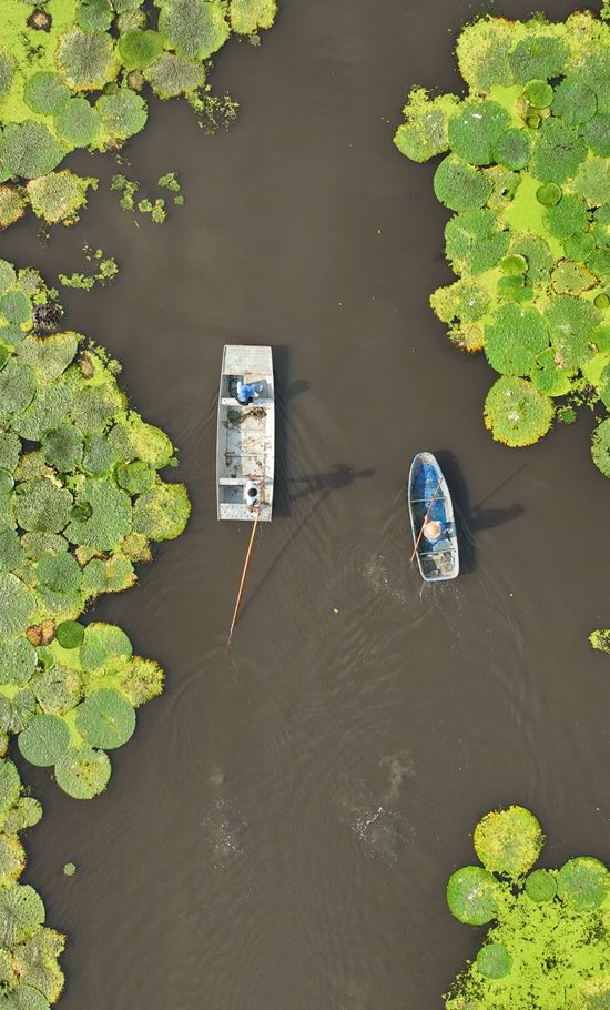 千百年來,逐三山湖水系而作的漁民,深諳水性,以水為家,撒網捕魚。“微微風簇浪,散作滿河星”。入夜,漁歌四起,滿載星輝。