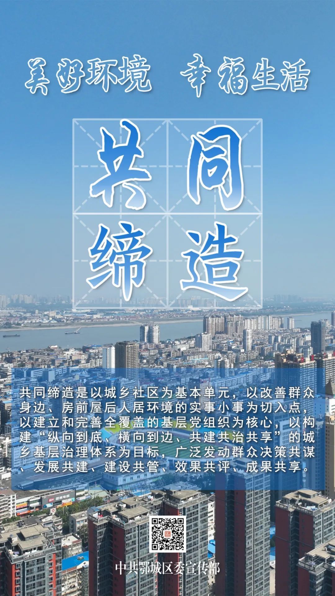 共同締造:以城鄉(xiāng)社區(qū)為基本單元,以改善群眾身邊、房前屋后人居環(huán)境的實事小事為切入點,以建立和完善全覆蓋的基層黨組織為核心,以構建“縱向到底、橫向到邊、共建共治共享”的城鄉(xiāng)基層治理體系為目標,廣泛發(fā)動群眾決策共謀、發(fā)展共建、建設共管、效果共評、成果共享。