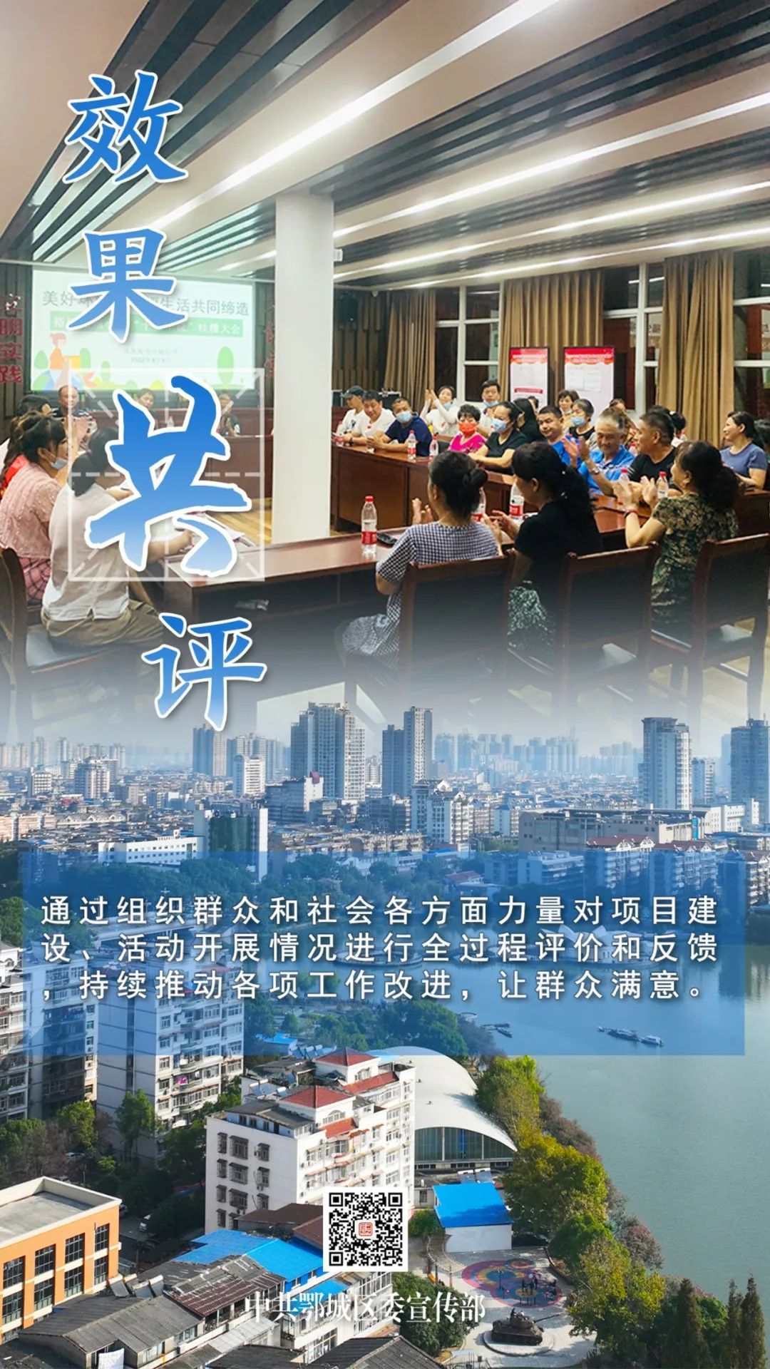 效果共評:通過組織群眾和社會各方面力量對項目建設、活動開展情況進行全過程評價和反饋,持續(xù)推動各項工作改進,讓群眾滿意。