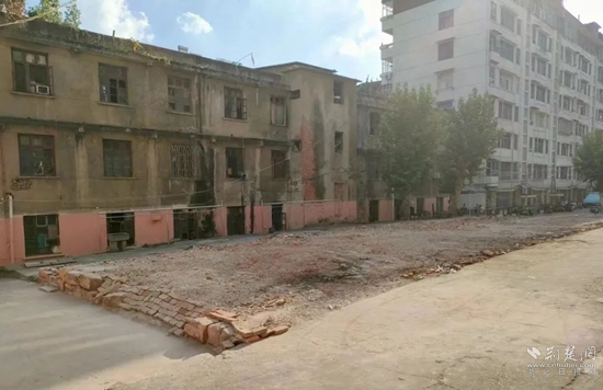 11月19日,記者在油廠小區(qū)見到,被拆除的7棟、10棟危房原址,豎起了施工圍擋,斜坡上的土地正在平整。