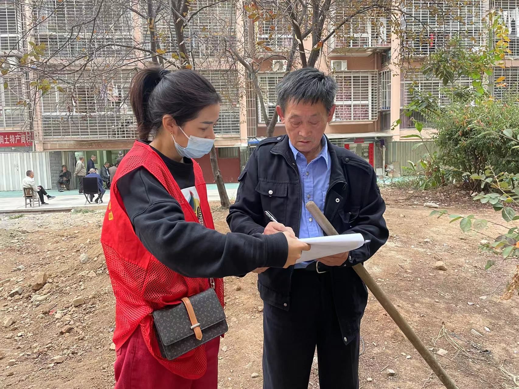 在社區(qū)的指導(dǎo)下,小區(qū)業(yè)委會主任邵忠新與小區(qū)老黨員、網(wǎng)格員等一起,挨家挨戶征求居民對停車位改造的意見和建議。