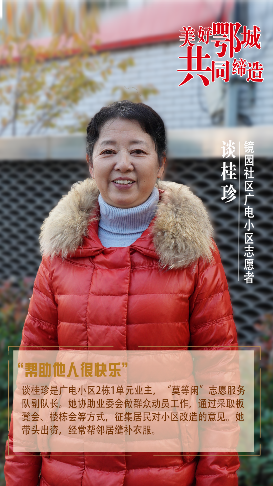 談桂珍是廣電小區(qū)2棟1單元業(yè)主,“莫等閑”志愿服務(wù)隊(duì)副隊(duì)長(zhǎng)。她協(xié)助業(yè)委會(huì)做群眾動(dòng)員工作,通過(guò)采取板凳會(huì)、樓棟會(huì)等方式,征集居民對(duì)小區(qū)改造的意見(jiàn)。她帶頭出資,經(jīng)常幫鄰居縫補(bǔ)衣服。