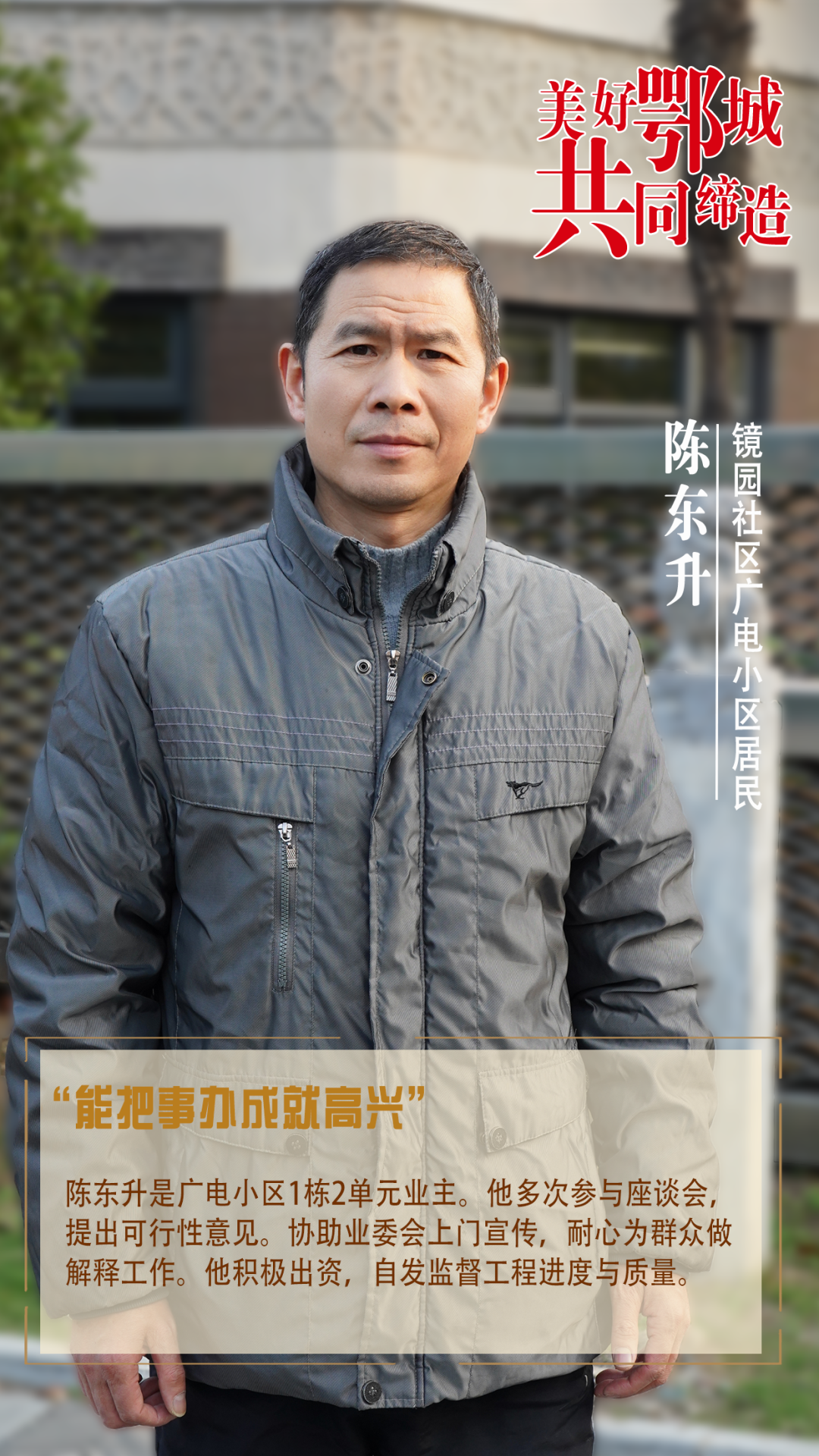 陳東升是廣電小區(qū)1棟2單元業(yè)主。他多次參與座談會(huì),提出可行性意見(jiàn)。協(xié)助業(yè)委會(huì)上門(mén)宣傳,耐心為群眾做解釋工作。他積極出資,自發(fā)監(jiān)督工程進(jìn)度與質(zhì)量。