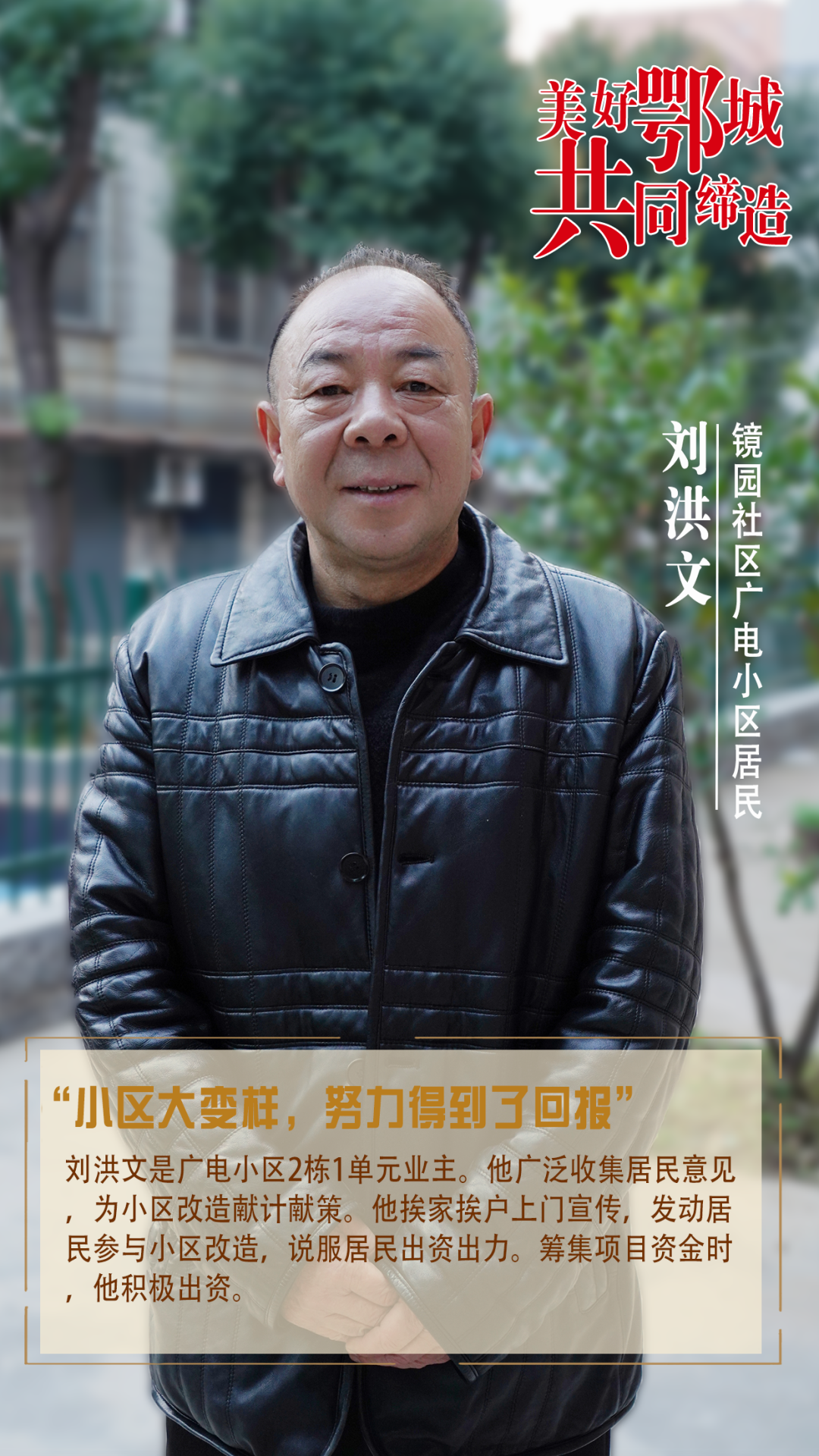 劉洪文是廣電小區(qū)2棟1單元業(yè)主。他廣泛收集居民意見(jiàn),為小區(qū)改造獻(xiàn)計(jì)獻(xiàn)策。他挨家挨戶上門(mén)宣傳,發(fā)動(dòng)居民參與小區(qū)改造,說(shuō)服居民出資出力?;I集項(xiàng)目資金時(shí),他積極出資。