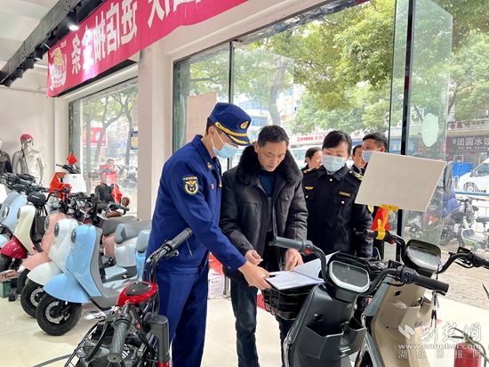 荊楚網(wǎng)(湖北日報網(wǎng))訊(通訊員盧雅婕)為加強電動自行車銷售領域安全管理,12月7日,黃石市黃石港區(qū)消防救援大隊聯(lián)合市場監(jiān)督管理局對電動自行車經(jīng)營場所安全隱患開展專項排查整治。