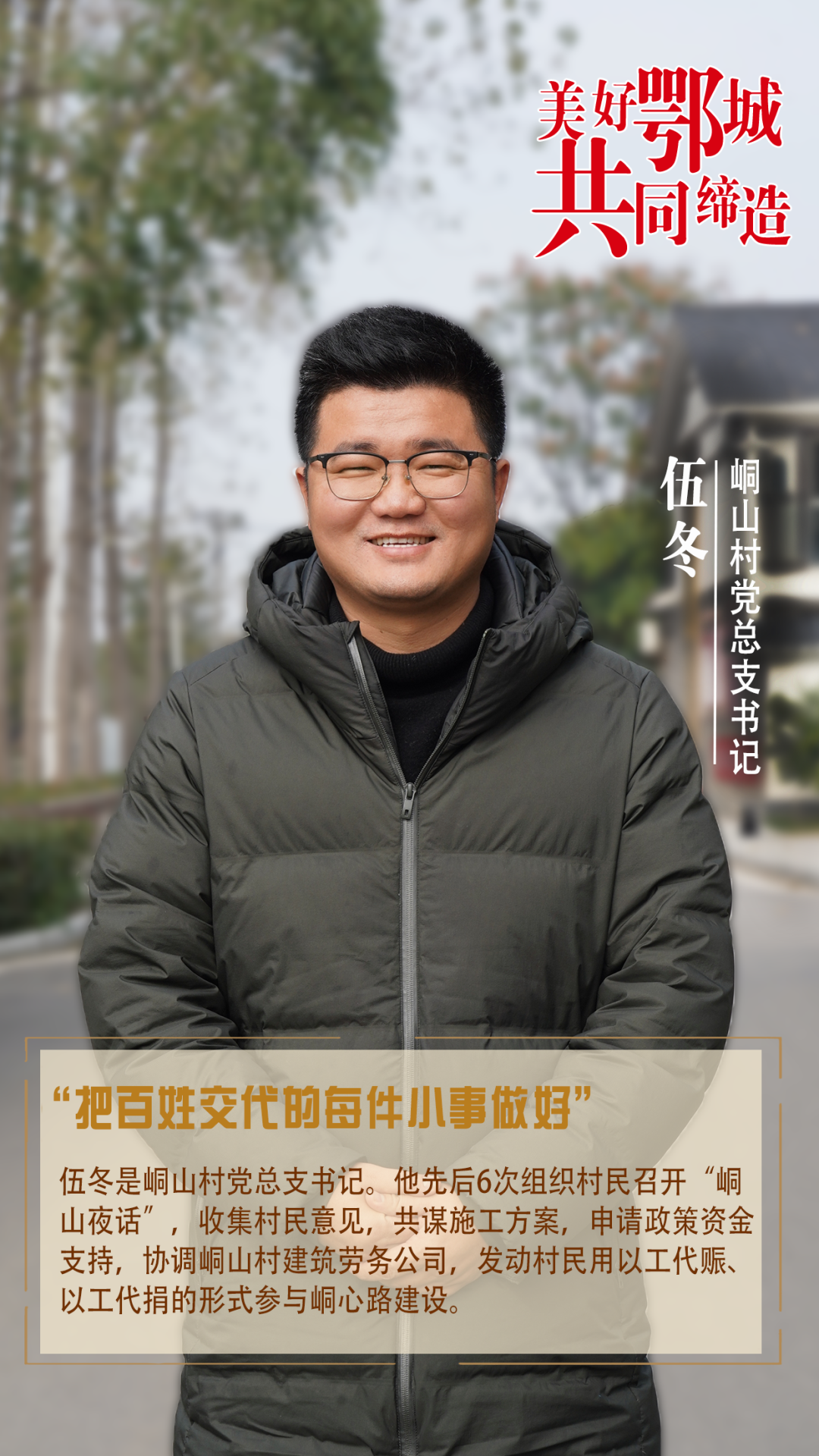 伍冬是峒山村黨總支書(shū)記。他先后6次組織村民召開(kāi)“峒山夜話(huà)”,收集村民意見(jiàn),共謀施工方案,申請(qǐng)政策資金支持,協(xié)調(diào)峒山村建筑勞務(wù)公司,發(fā)動(dòng)村民用以工代賑、以工代捐的形式參與峒心路建設(shè)。