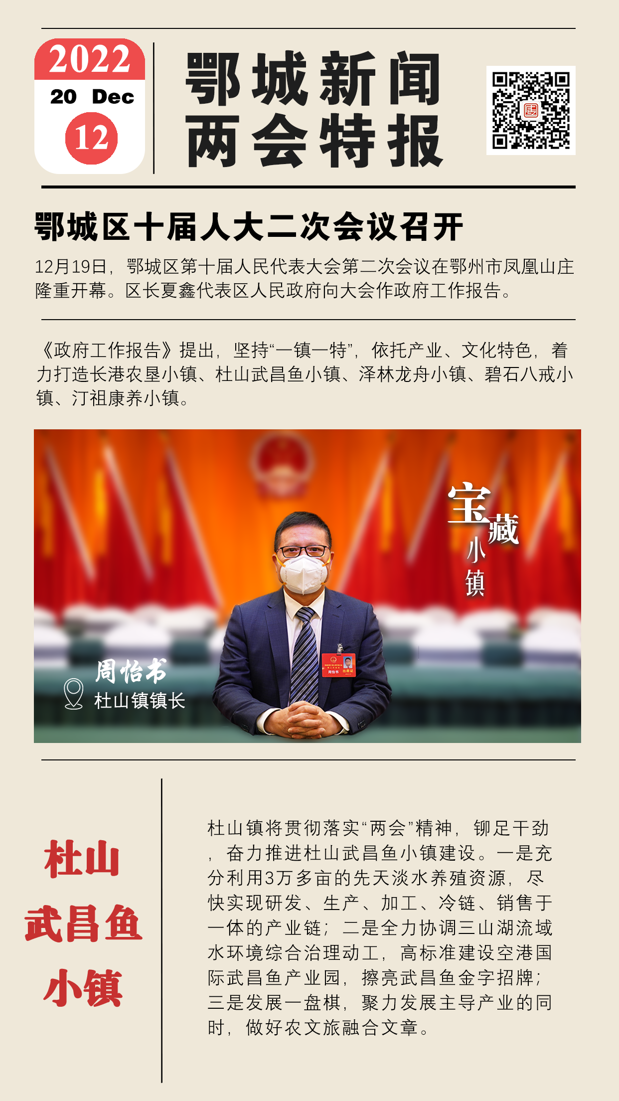 杜山鎮(zhèn)將貫徹落實(shí)“兩會(huì)”精神,鉚足干勁,奮力推進(jìn)杜山武昌魚小鎮(zhèn)建設(shè)。