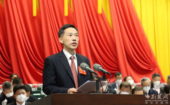 洪再林作《中國(guó)人民政治協(xié)商會(huì)議黃岡市第六屆委員會(huì)常務(wù)委員會(huì)工作報(bào)告》。記者胡小軍 攝