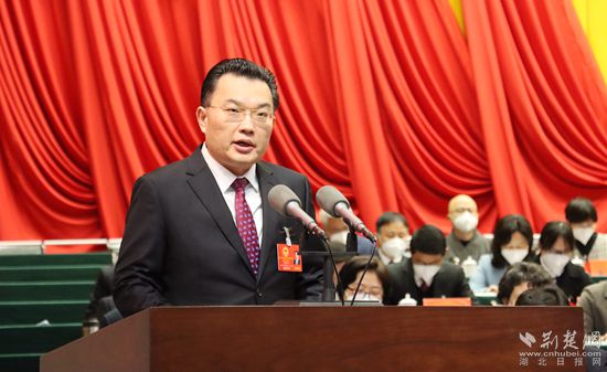 黃岡市委副書記、市長李軍杰向大會作報(bào)告。記者 胡小軍 攝