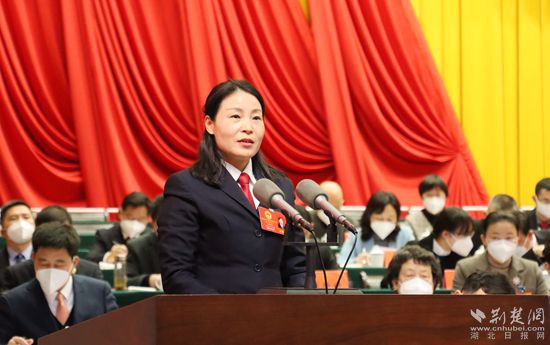 黃岡市中級人民法院黨組書記、代院長文利紅作報(bào)告。記者 胡小軍 攝