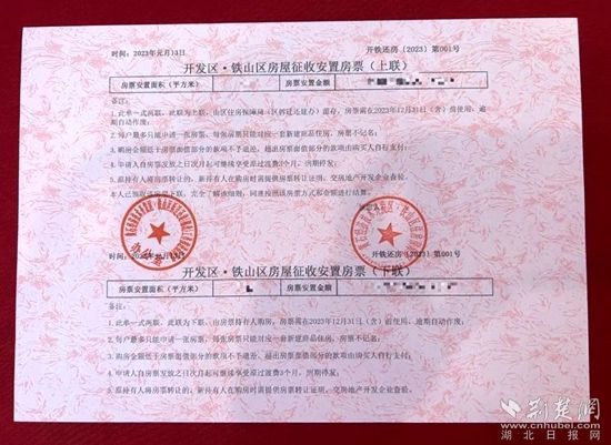 “這是我區(qū)年初推出試行房票安置制度后發(fā)放的首張房票,也是全市首張房票?!遍_發(fā)區(qū)·鐵山區(qū)住房保障局開發(fā)科科員王哲介紹,通過房票安置方式,一方面縮短了拆遷群眾安置時間,另一方面拓寬了安置房源,打通住房轉(zhuǎn)換通道后,拆遷群眾可以根據(jù)個人需求購買心儀的商品房用來安置,選擇范圍更大了、居住環(huán)境更好了、生活品質(zhì)更高了。