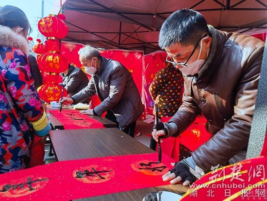 現(xiàn)場(chǎng)寫(xiě)、送對(duì)聯(lián)。通訊員 供圖