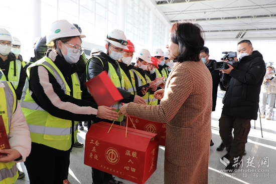 今年送你們回家過春節(jié),明年將再一次迎接你們回來,繼續(xù)建設(shè)、發(fā)展、運營花湖機場,花湖機場因你們而驕傲,將來你們也一定會因花湖機場而驕傲?!痹诂F(xiàn)場,鄂州市委常委、統(tǒng)戰(zhàn)部部長、市總工會主席夏帆對機場建設(shè)者代表說。