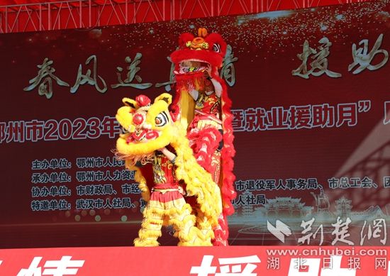 與此同時(shí),暖場(chǎng)表演鼓樂(lè)齊鳴、熱火朝天,歌聲聲動(dòng)梁塵,舞獅活靈活現(xiàn)、精彩絕倫,引得觀者連連叫好?,F(xiàn)場(chǎng)一片歡快熱鬧的場(chǎng)景,好似寓意著每一位求職者滿載而歸。
