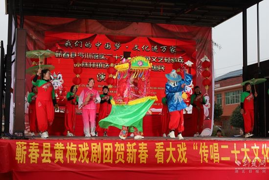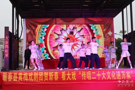 荊楚網(wǎng)(湖北日?qǐng)?bào)網(wǎng))訊(通訊員凌敏、程楚輝)2月2日,由蘄春縣委宣傳部、縣文化和旅游局、株林鎮(zhèn)人民政府聯(lián)合主辦的“我們的中國(guó)夢(mèng)文化進(jìn)萬(wàn)家暨蘄春縣貫徹落實(shí)二十大精神+送戲下鄉(xiāng)”惠民文化演出走進(jìn)當(dāng)?shù)劓?zhèn)村一線,用黃梅戲表演唱等形式,把黨的二十大精神送到老百姓家門口,贏得群眾一片叫好聲。