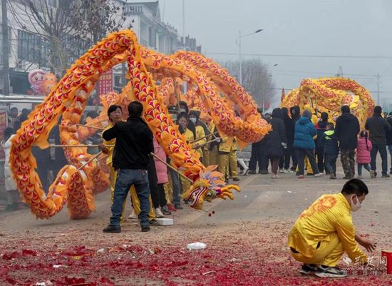 荊楚網(wǎng)(湖北日?qǐng)?bào)網(wǎng))訊(通訊員 董劍橋 陳鈺)2月5日,蘄春縣金龍鬧元宵巡游活動(dòng)拉開(kāi)序幕,由橫車(chē)鎮(zhèn)界嶺村民自發(fā)組織的三條舞龍隊(duì)伍敲鑼打鼓、踏歌起舞,整個(gè)小鎮(zhèn)人聲鼎沸、熱鬧非凡。