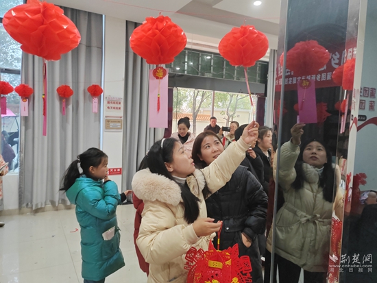 華容區(qū)蒲團(tuán)鄉(xiāng)舉辦“誦經(jīng)典猜燈謎鬧元宵”活動(dòng)。附近的居民家庭紛紛來到文化站農(nóng)家書屋,參與猜燈謎環(huán)節(jié),大家在一盞盞花燈下,思索蘊(yùn)藏著廉政小知識(shí)的謎語。書于燈,映于燭,賦于形,藏于字,樂趣無窮的思索求證也將廉潔文化潛移默化的傳遞到群眾心中。