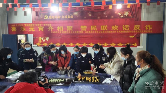 此次活動中,東風所民輔警還與社區(qū)干部、居民代表一起做游戲,包湯圓、吃湯圓。大冶公安此次的花式鬧元宵既傳承了中華民族傳統(tǒng)節(jié)日的文化習俗,又讓群眾在歡樂祥和的節(jié)日氛圍中學習了反詐知識,增長了對電信網(wǎng)絡詐騙危害的認識,營造了群眾參與禁毒反詐斗爭的濃厚氛圍。