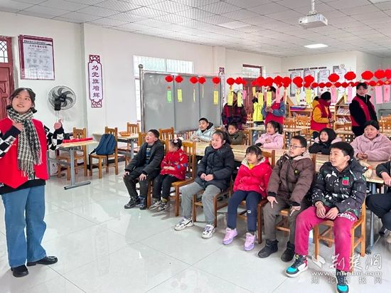 大二護(hù)理專(zhuān)業(yè)的丁佳慧在2021年就加入了學(xué)校的“星火支教”團(tuán)隊(duì),寒假回到家鄉(xiāng)麻城后,她組建“閱而有味讀書(shū)會(huì)”。在春節(jié)期間,聯(lián)合麻城市公益組織——青力締造服務(wù)隊(duì),一起走進(jìn)麻城市三河口鎮(zhèn)碧楓沖村委會(huì)留守兒童之家,為30多個(gè)小朋友留守的兒童送去溫暖禮包,陪他們做游戲,并為他們帶去了別開(kāi)生面的花燈制作課。