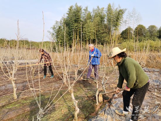 在橫溝橋鎮(zhèn)豐順農(nóng)業(yè)生態(tài)采摘園,10多名果農(nóng)正在精心在給60余畝桑葚樹(shù)松土、施農(nóng)家肥。只見(jiàn)果農(nóng)們二人一組,一個(gè)打坑,一個(gè)施肥,然后覆土蓋膜,配合默契。