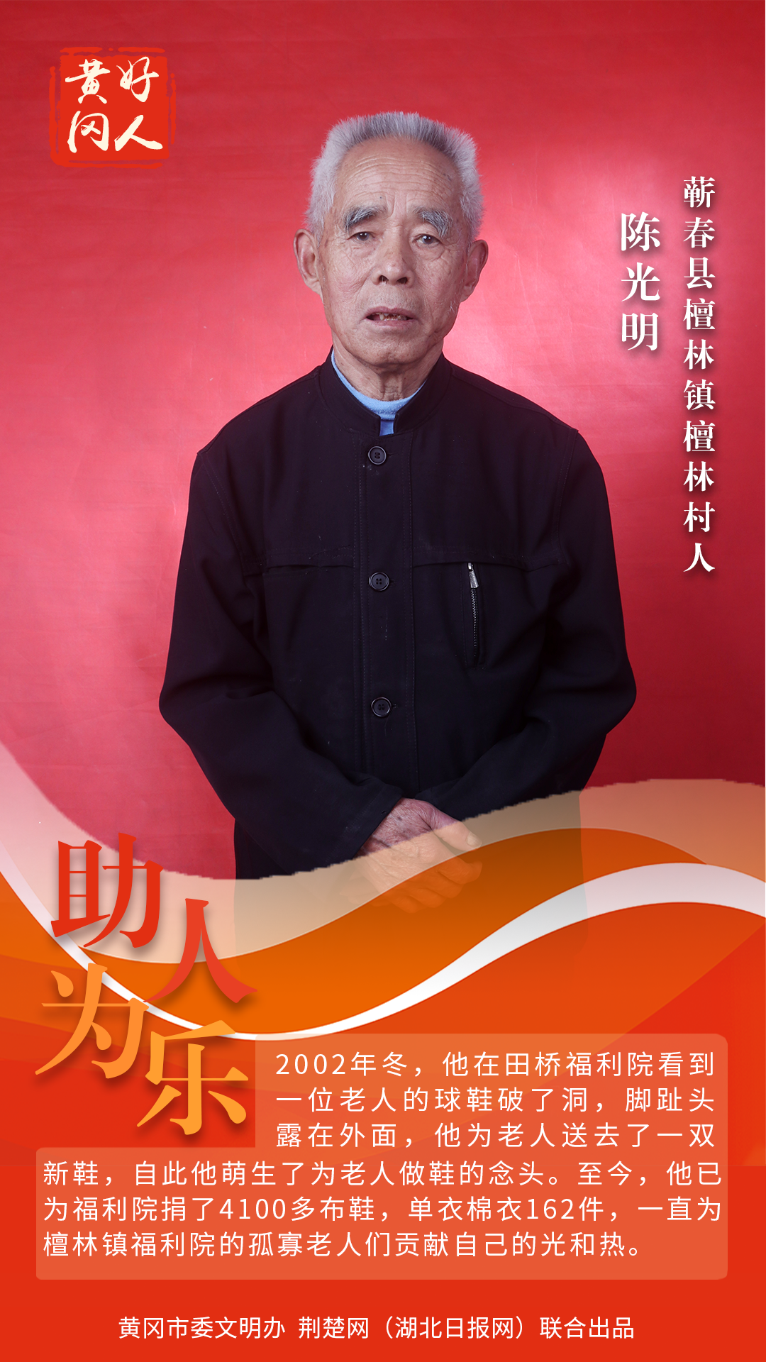 本期“黃岡好人”共有5組好人入選。他們中有“助人為樂(lè)、樂(lè)善好施”的陳光明;有“敢打硬仗、熱衷公益”的楊志謀;有“危難時(shí)刻顯身手”的杜友福;有“海歸博士變身田間耕夫”的潘新星;有“35年堅(jiān)守,照顧殘障村民如至親”的朱自學(xué)、王桂珍夫婦。