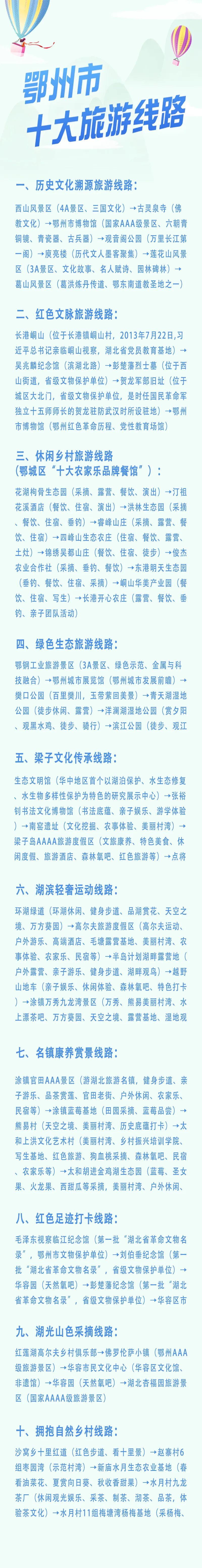 本次旅游周(5月19日-25日)還將舉辦各類主題活動(dòng),與全城人民相約,共同欣賞和感受鐘靈毓秀的自然風(fēng)光、多姿多彩的人文底蘊(yùn)、日新月異的城鄉(xiāng)發(fā)展,以及69萬鄂城人民美好生活的幸福圖景。