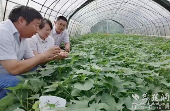 “針對紅安苕因長期種植和無性繁殖而導(dǎo)致的產(chǎn)量降低和商品率低的問題,蔡興奎迅速組建博士團隊,引進和創(chuàng)新集成適合當(dāng)紅安的新技術(shù)、新模式,直接將科技示范田建在農(nóng)民地里,讓農(nóng)民近距離看到示范效果?!币Ψ逭f。