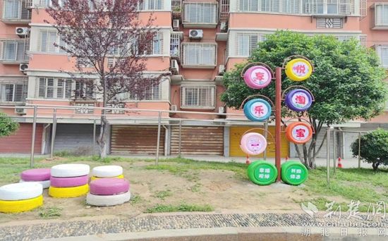 荊楚網(wǎng)(湖北日報網(wǎng))訊(通訊員 丁元中)近日,鄂城區(qū)西山街道石山社區(qū)觀瀾花園小區(qū),經(jīng)過創(chuàng)意涂鴉,廢舊輪胎“搖身一變”,成了一個個色彩斑斕的彩色衣裳,不少兒童正在輪胎搭建而成的滑梯、蹺蹺板、秋千等娛樂設(shè)施上面玩耍。一旁的健身器材上,一些老人正在鍛煉身體,原來空無一物的休閑廣場已成為一個廣受居民歡迎的新去處。