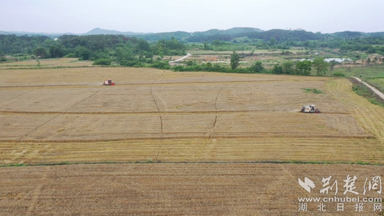 荊楚網(wǎng)(湖北日報(bào)網(wǎng))訊(通訊員王煥鑫 余常家)麥浪滾滾,機(jī)器轟鳴。近日,在永佳河鎮(zhèn)尾斗山村的田間地頭,市場主體、種糧大戶們忙著組織農(nóng)機(jī)收割小麥,呈現(xiàn)出一派繁忙的豐收景象。