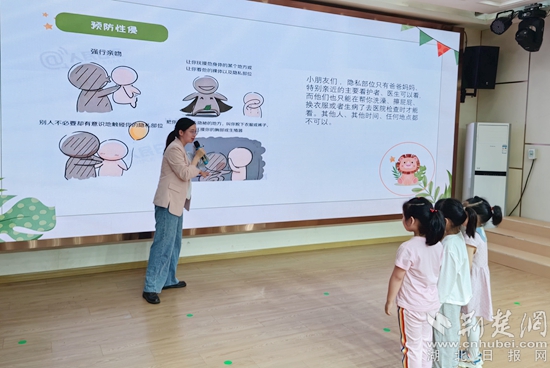 活動中,杜航用一些發(fā)生在身邊鮮活、真實的典型事例,通俗易懂、深入淺出地講解了《未成年人保護法》中“家庭保護”“學校保護”“社會保護”和“司法保護”的相關(guān)內(nèi)容。用幼兒容易理解的小視頻和故事進行防性侵、防拐騙、防溺水等方面的安全教育,機智的問答互動,讓孩子們在歡聲笑語中學到了知識,懂得了如何保護自己。
