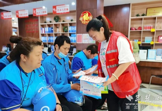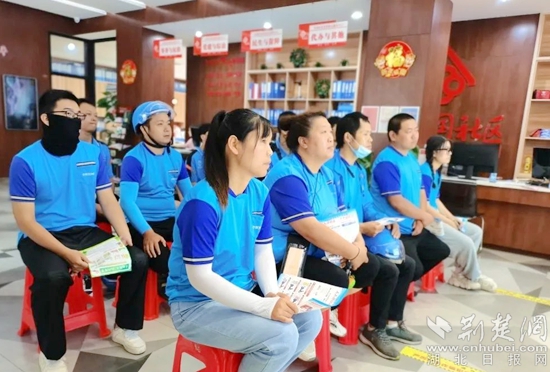 社區(qū)網(wǎng)格員為“藍(lán)騎士”們發(fā)放消防安全、預(yù)防溺水、防范詐騙等宣傳資料,動員他們在提升自身安全防護(hù)意識的同時,也通過優(yōu)質(zhì)文明的配送服務(wù)把“人人講安全 個個會應(yīng)急”的理念傳遞給更多人。