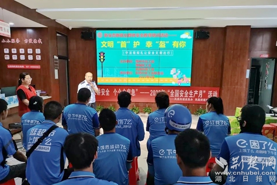 活動特別邀請市公安局交通管理局五大隊一中隊鳳凰分隊的趙錦雄為社區(qū)新業(yè)態(tài)新就業(yè)服務(wù)聯(lián)盟成員單位——“餓了么”長江天下站的“藍(lán)騎士”們上了一堂精彩又實(shí)用的交通安全教育課。