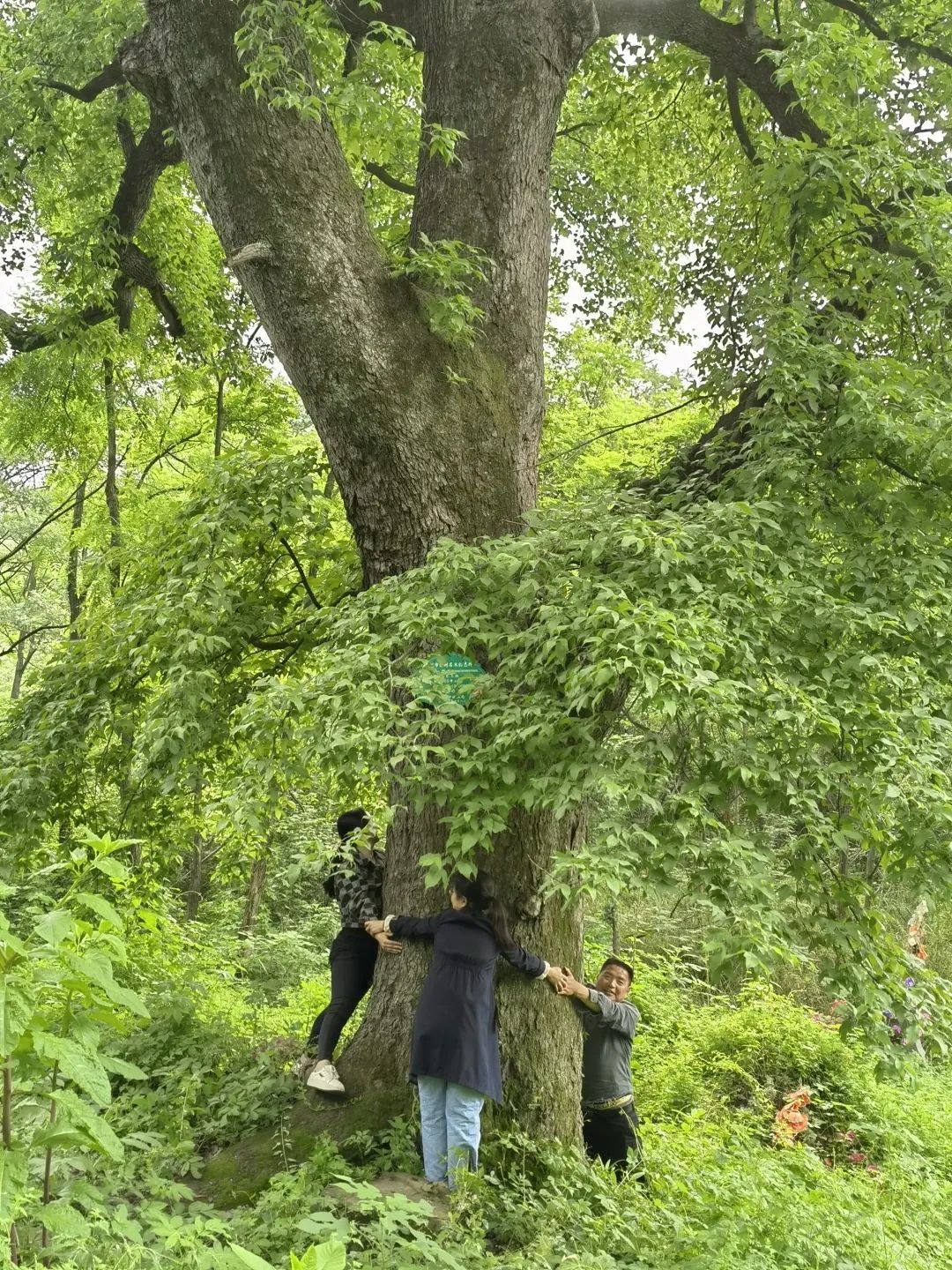三人合抱才能圍住的樹干