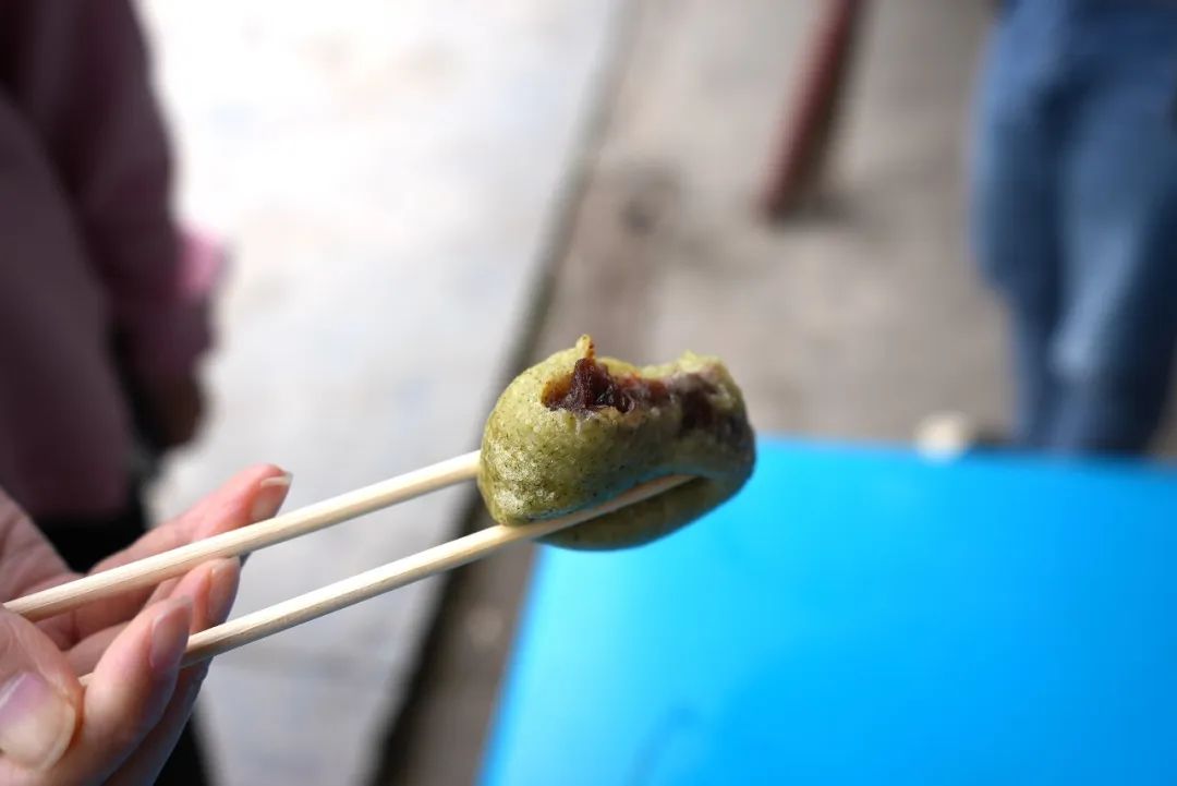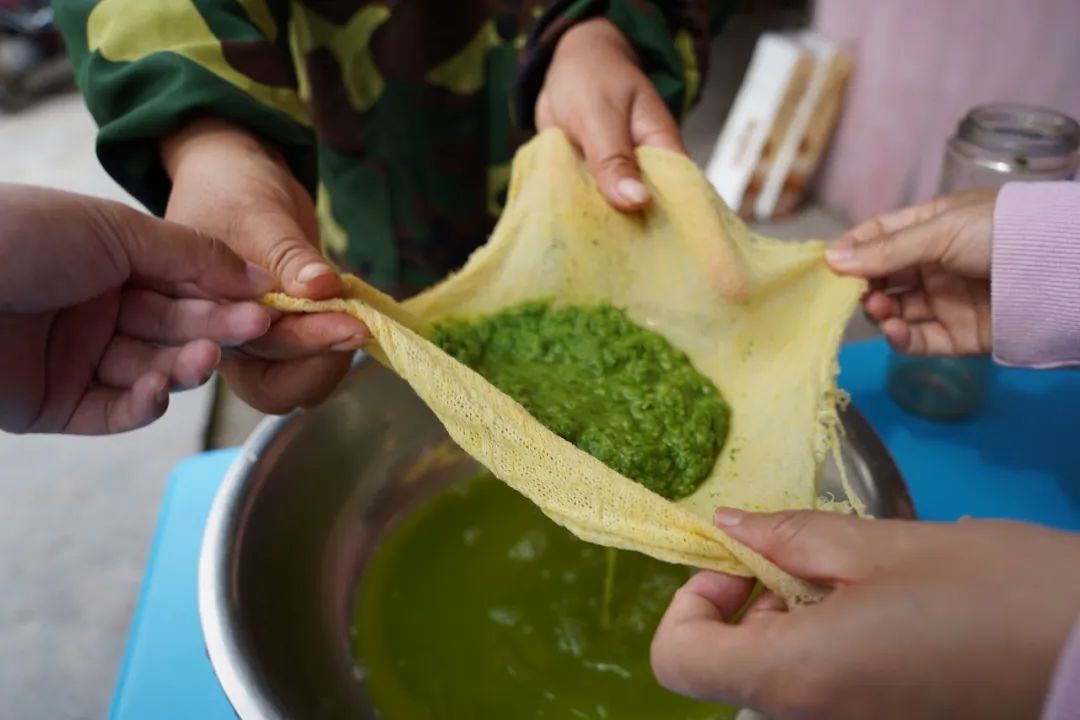 采艾草最鮮嫩的葉尖兒煮沸后過(guò)濾出青色汁液