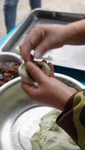 填入豆沙餡或肉餡