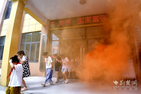 伴隨著陣陣報警聲,消防演練開始。孩子們在消防員的帶領(lǐng)下,用手捂住口鼻、半彎腰,穿過“濃煙”,有序撤離,安全到達指定地點,體驗了發(fā)生火災(zāi)時的逃生技巧。隨后,