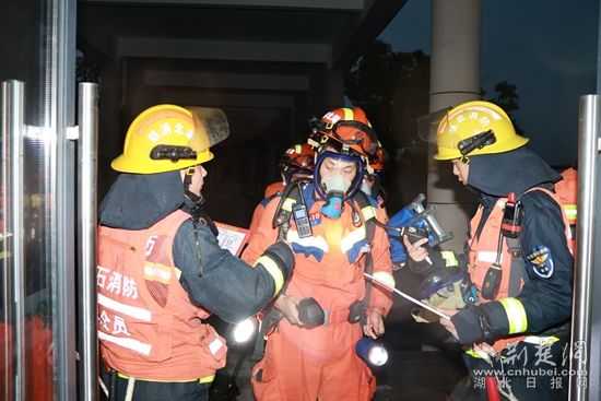 荊楚網(wǎng)(湖北日報網(wǎng))訊(通訊員 寧靜)“緊急通知!緊急通知!醫(yī)院門診樓5樓發(fā)生火災,‘火勢’正在蔓延,現(xiàn)啟動火災緊急疏散!請盡快撤離!”伴隨著陣陣報警聲響起,數(shù)輛消防車聚集……7月8日晚,一場高層建筑滅火救援夜間實戰(zhàn)演練在黃石市中心醫(yī)院黃金山院區(qū)拉開帷幕。