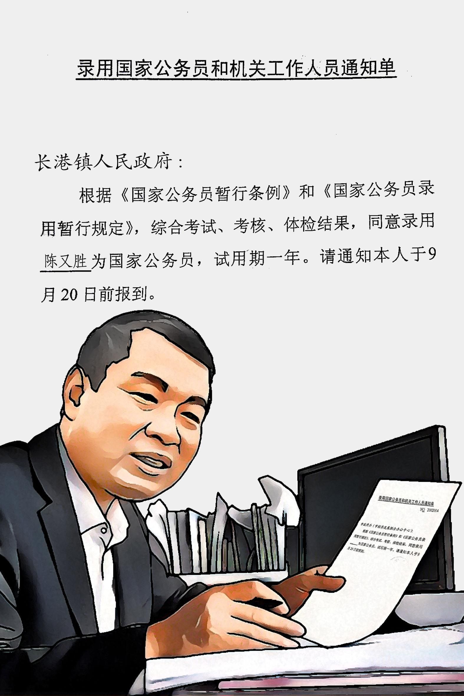 2012年,39歲的陳又勝考取了長港鎮(zhèn)機(jī)關(guān)公務(wù)員。根據(jù)當(dāng)時的政策,陳又勝可以到長港鎮(zhèn)上班??稍偃紤]后,陳又勝決定還是繼續(xù)留在峒山村,帶領(lǐng)鄉(xiāng)親們致富奔小康。