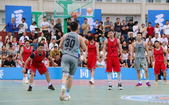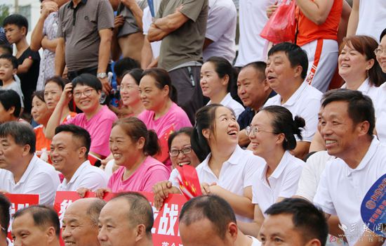 傍晚,華燈初上,匡河小學(xué)籃球場熱鬧非凡,球場周圍群眾揮舞著國旗,喜笑顏開,加油聲、喝彩聲一浪高過一浪。