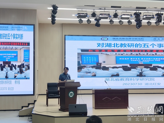會(huì)上,湖北省教育科學(xué)研究院副院長傅華強(qiáng)作了題為《對(duì)湖北教研的五個(gè)事實(shí)判斷》的講座。