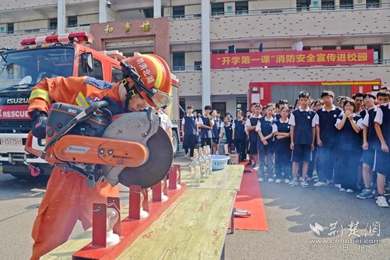 荊楚網(wǎng)(湖北日報(bào)網(wǎng))訊(通訊員 寧靜)9月8日,在秋季開學(xué)之際,開發(fā)區(qū)·鐵山區(qū)消防救援大隊(duì)走進(jìn)黃石市第五中學(xué),開展“開學(xué)第一課”消防知識進(jìn)校園活動。