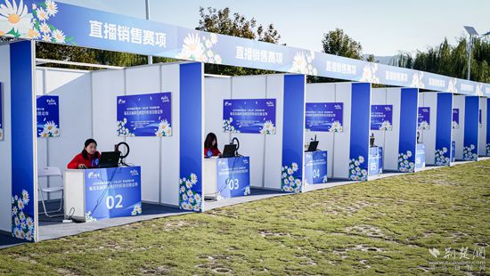 “今天的優(yōu)惠數(shù)量有限,喜歡的寶寶趕緊下單”“倒計(jì)時(shí)3、2、1,上鏈接……”環(huán)形補(bǔ)光燈前,15名“菊花露”帶貨主播拿出“看家本領(lǐng)”對(duì)著直播設(shè)備賣力地“吆喝”著,這里不是網(wǎng)紅直播間,而是競賽的現(xiàn)場。
