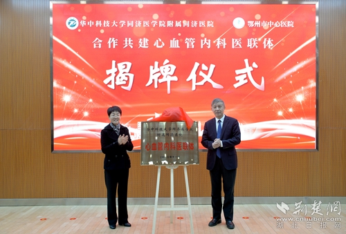 荊楚網(wǎng)(湖北日?qǐng)?bào)網(wǎng))訊(通訊員 高曉東 潘健)11月16日,鄂州市中心醫(yī)院心內(nèi)科與華中科技大學(xué)同濟(jì)醫(yī)學(xué)院附屬同濟(jì)醫(yī)院心內(nèi)科合作共建“心血管內(nèi)科醫(yī)聯(lián)體”簽約揭牌儀式在市中心醫(yī)院學(xué)術(shù)報(bào)告廳舉行。
