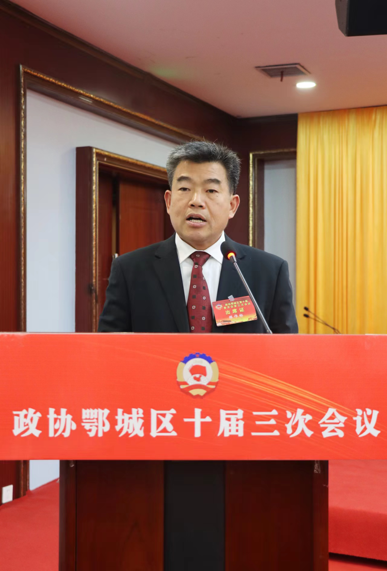 鄂城區(qū)政協(xié)主席楊光榮代表政協(xié)鄂城區(qū)第十屆委員會常務(wù)委員會作工作報告。胡小軍 攝