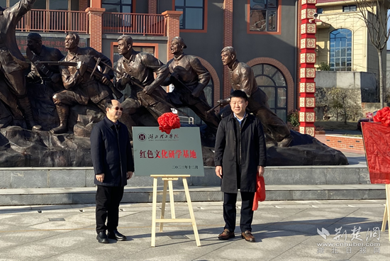 當(dāng)天上午,湖北理工學(xué)院黨委副書記李金奇和大冶市委宣傳部副部長劉玉強,共同為湖北理工學(xué)院紅色文化研學(xué)基地揭牌。湖北理工學(xué)院馬克思主義學(xué)院書記、院長吳鳳庭和大箕鋪鎮(zhèn)黨委書記柯夢兵,共同為湖北理工學(xué)院“大思政課”教育教學(xué)基地揭牌。