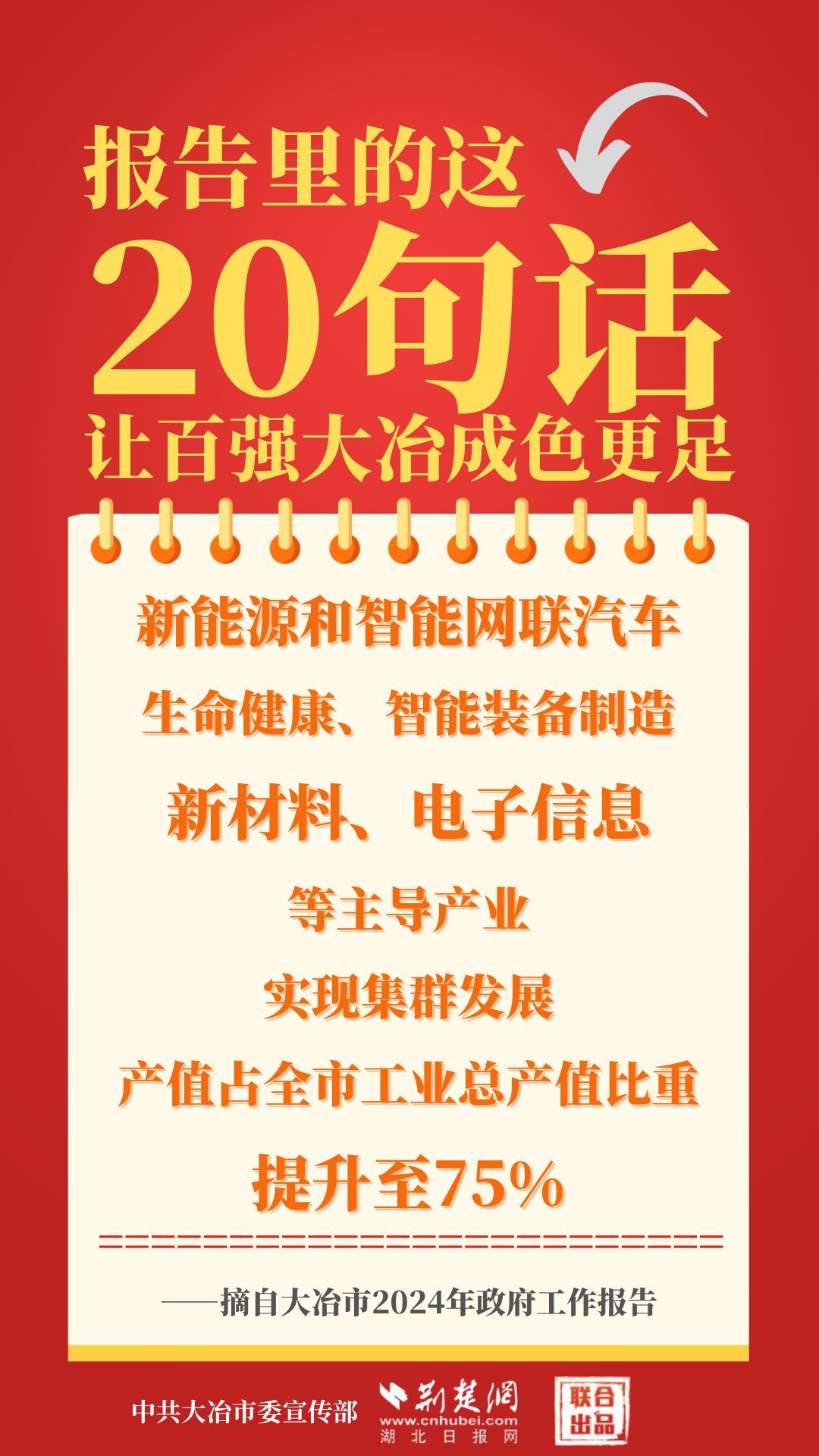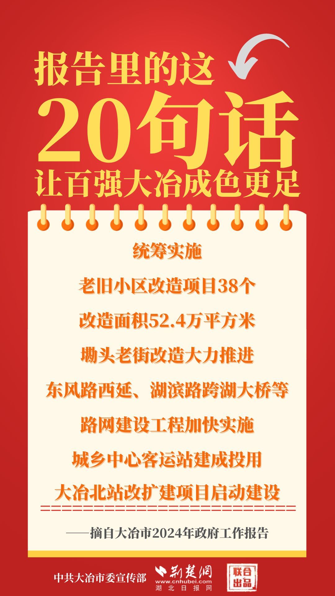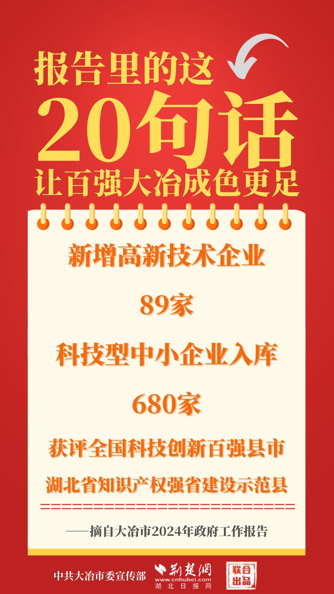 1月12日,大冶市第七屆人民代表大會第四次會議開幕,大冶市委副書記、市長孫輒作政府工作報告。報告里的這20句話,讓百強大冶成色更足。