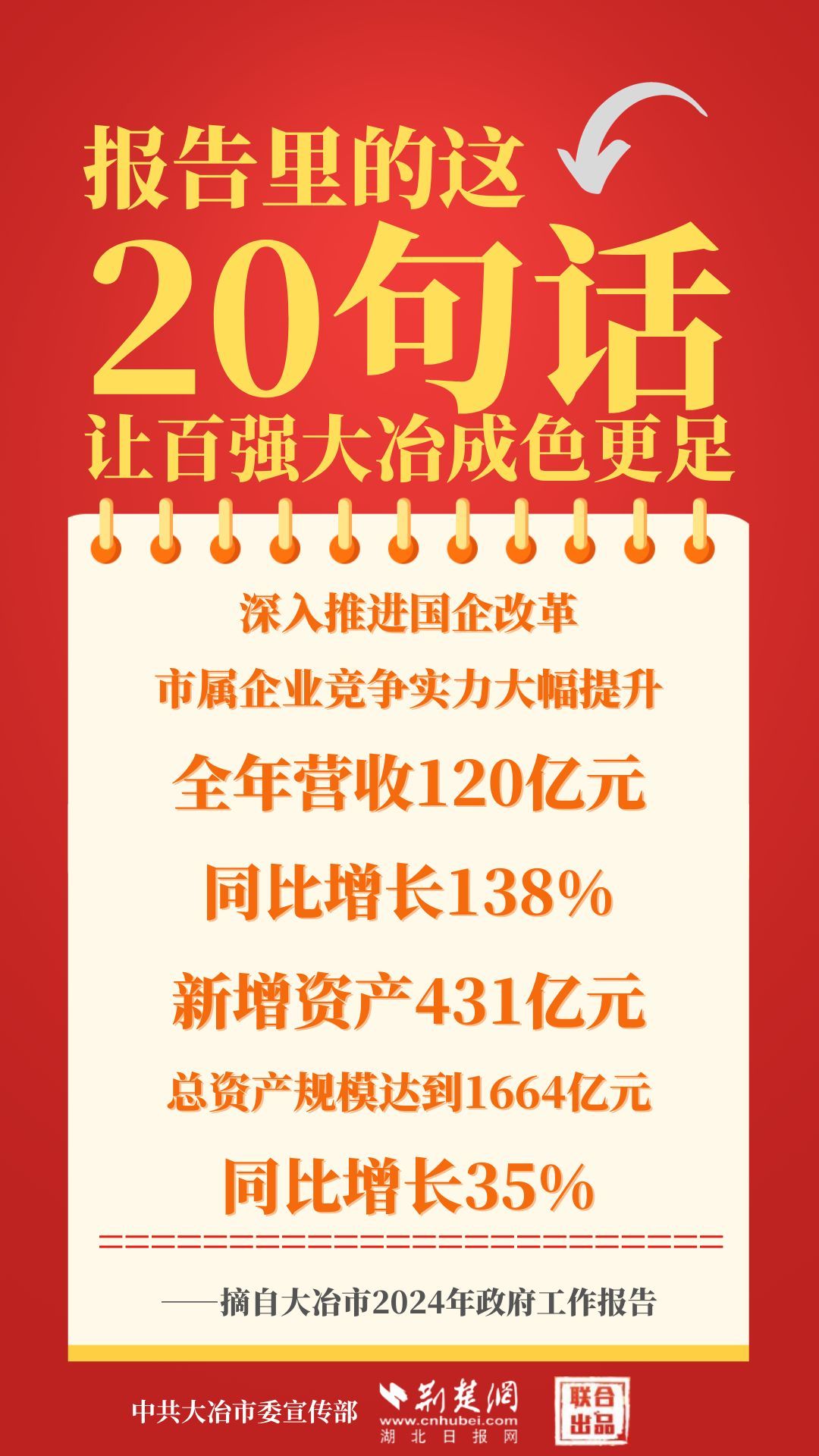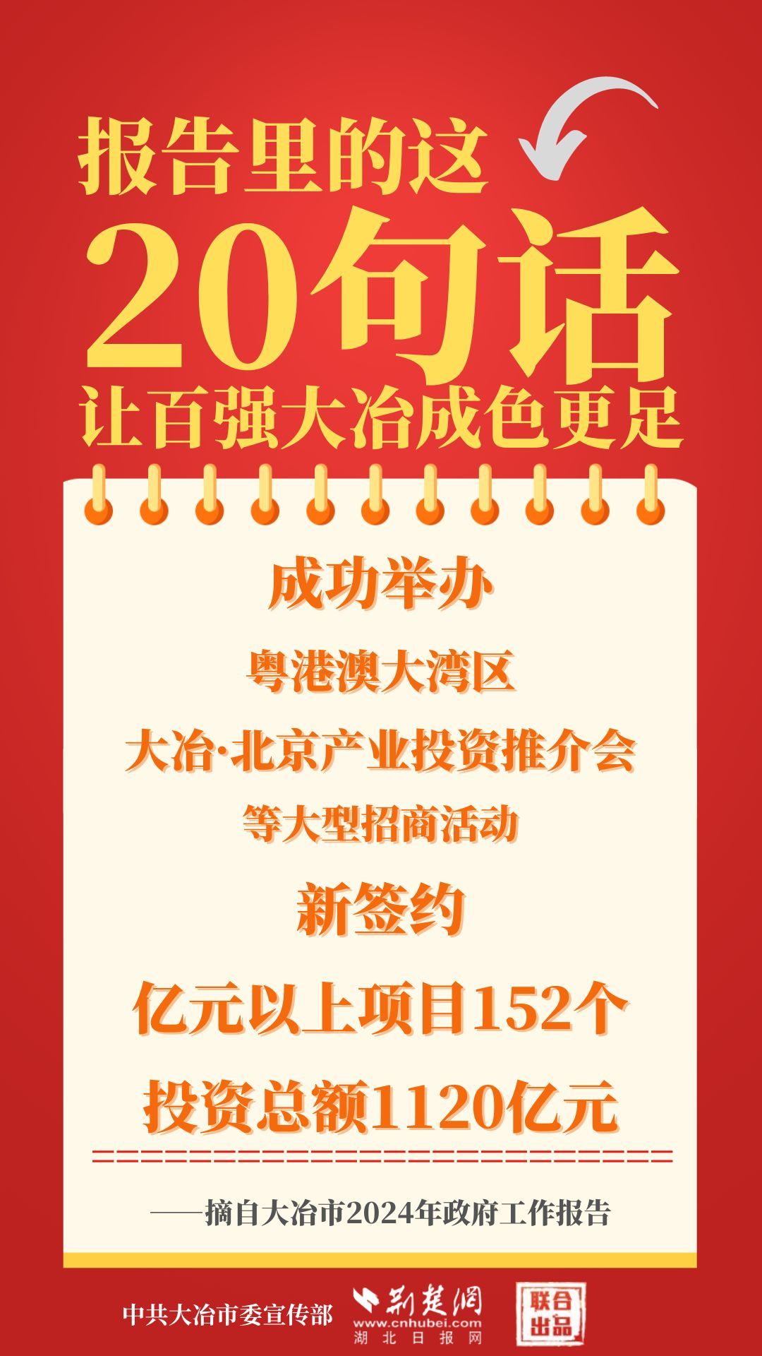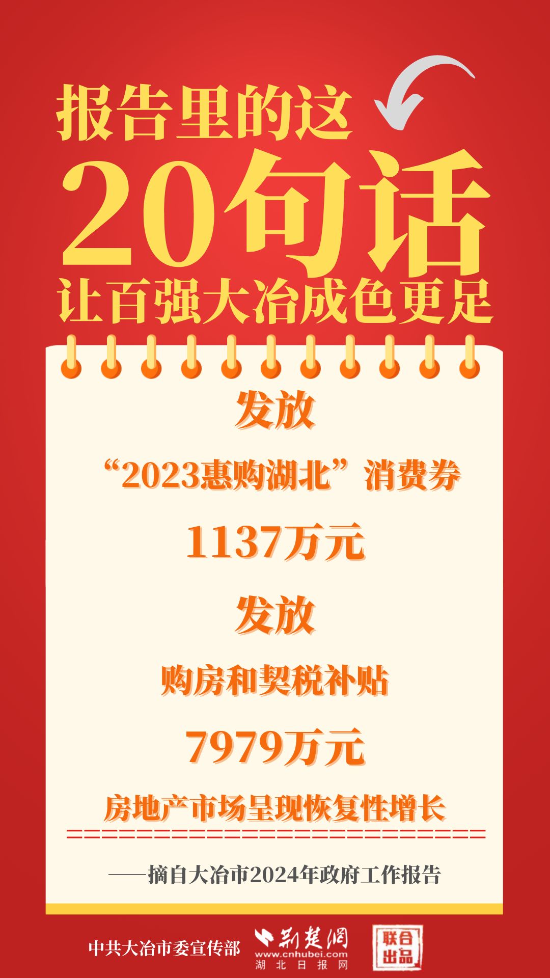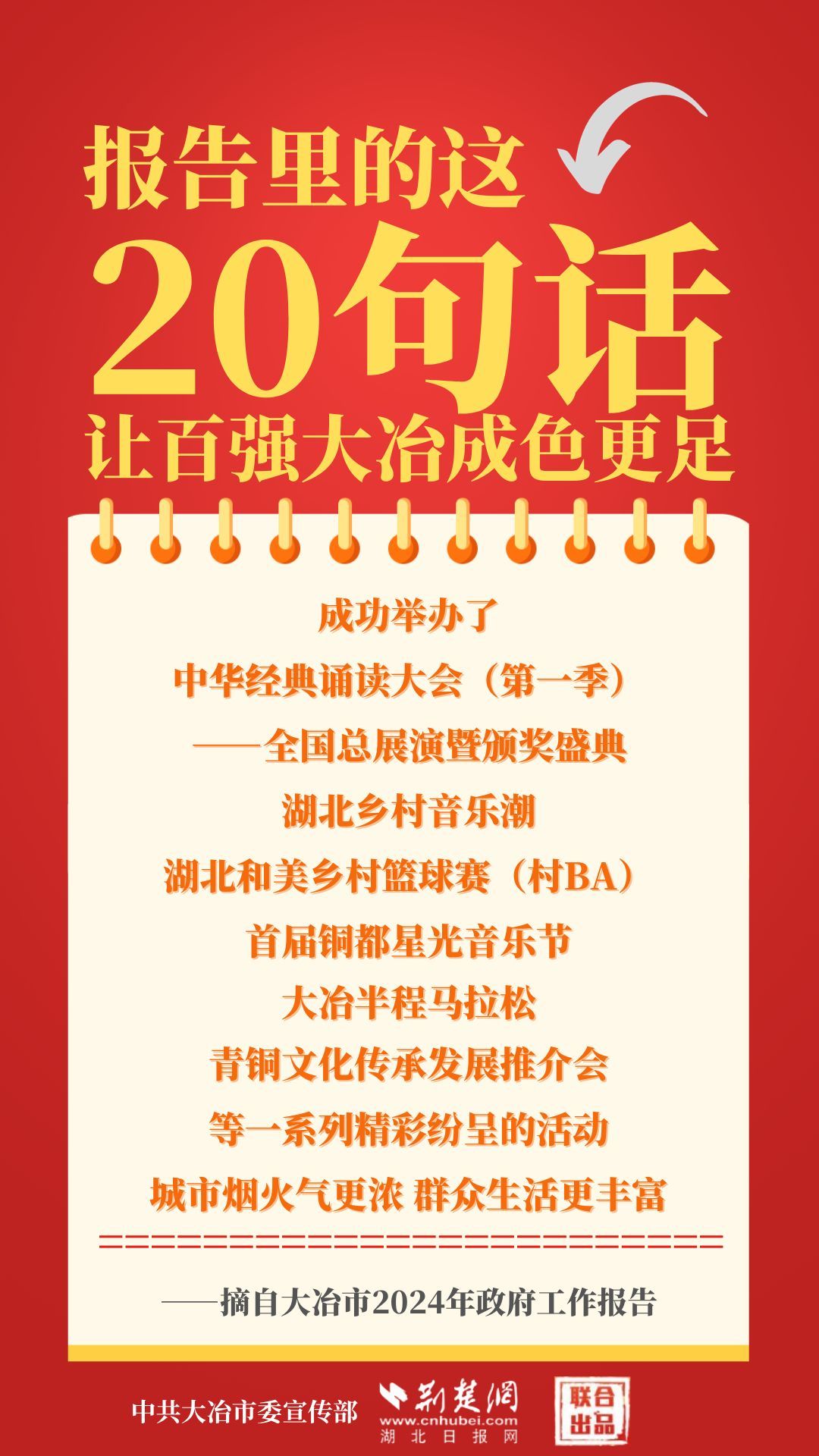 1月12日,大冶市第七屆人民代表大會第四次會議開幕,大冶市委副書記、市長孫輒作政府工作報告。報告里的這20句話,讓百強大冶成色更足。
