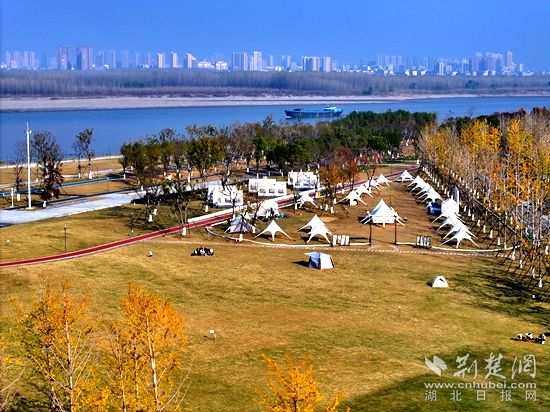 冬日暖陽,樊口江灘邊,散布著數(shù)十個露營帳篷。草地上,有的游客在燒烤,有的游客坐在小凳子曬太陽閑聊,有的游客在逗弄著寵物……幾個小朋友沿著江堤放風(fēng)箏,遠(yuǎn)處的長江,貨船穿梭不息。
