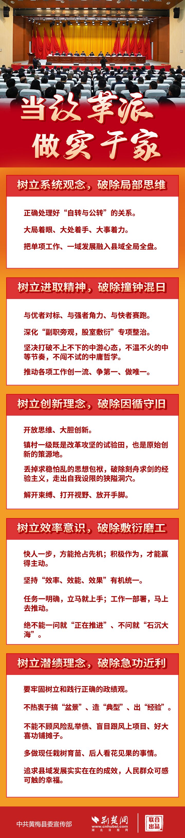 2月20日,黃梅縣召開三級干部大會??h委書記劉欲曉提出,黃梅要前進(jìn),根本在干部。要引領(lǐng)全縣干部解放思想、甩開膀子、邁開步子、干出樣子,在堅持先立后破中保持站位前列姿態(tài)。